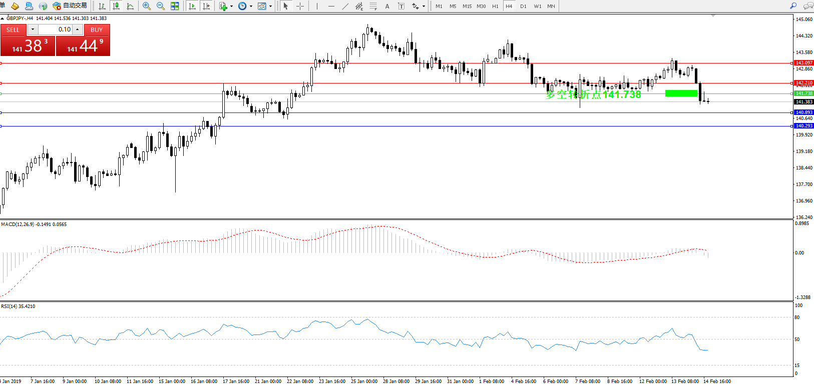 交易策略:141.738下方看跌,目标140.893140.293