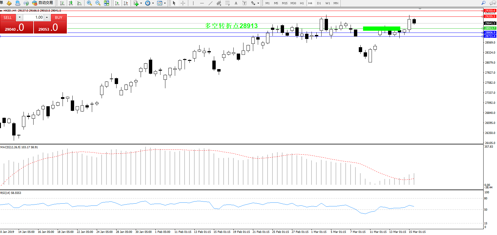 香港恒生指数收盘升0.6%29012.26点。再度破29000;港股短期料再升,上半年有望收复三万点。市场看好A股、港股上半年的表现,且预计近期国企公布业绩后可带动恒指在短期内再向上突破。另一方面,A股今年获MSCI增加权重至两成,资金量不缺,短期仍有上升空间,间接提振港股表现。港股上周二(12日)再形成一个上升裂口,反映市场下调压力不大,相信恒指在27800点有支持,上半年更可收复30000点关口。
