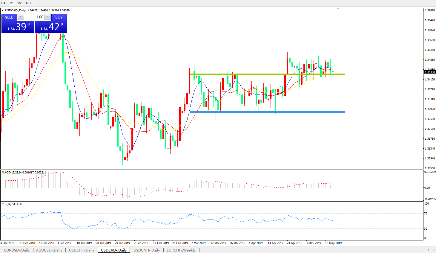 加拿大4月核心CPI年率不及预期及前值,叠加风险偏好降温,美元兑加元短线走高24点至四日高点1.3494; 周三美国4月零售销售月率意外下行,可能是受近期工业表现不佳和外部逆风环境的拖累;零售销售月率的下降预示了低迷的未来通胀率,或将进一步加强市场对美联储的降息预期;同时,加拿大统计局表示,4月CPI年率从3月份的1.9%升至2.0%,原因包括炼油厂改用夏季混合燃料导致汽油价格上涨、全球油价不断上涨以及6个省征收或提高了碳排放税;但加拿大4月核心CPI年率2%,不及前值及预期值,令美元兑加元短线走高24点至四日新高1.3494; 此前加拿大外长弗里兰表示,加拿大和墨西哥在北美自由贸易协定(NAFTA)谈判过程中保持紧密合作,周二双方会面中讨论了美国钢铝关税问题 。