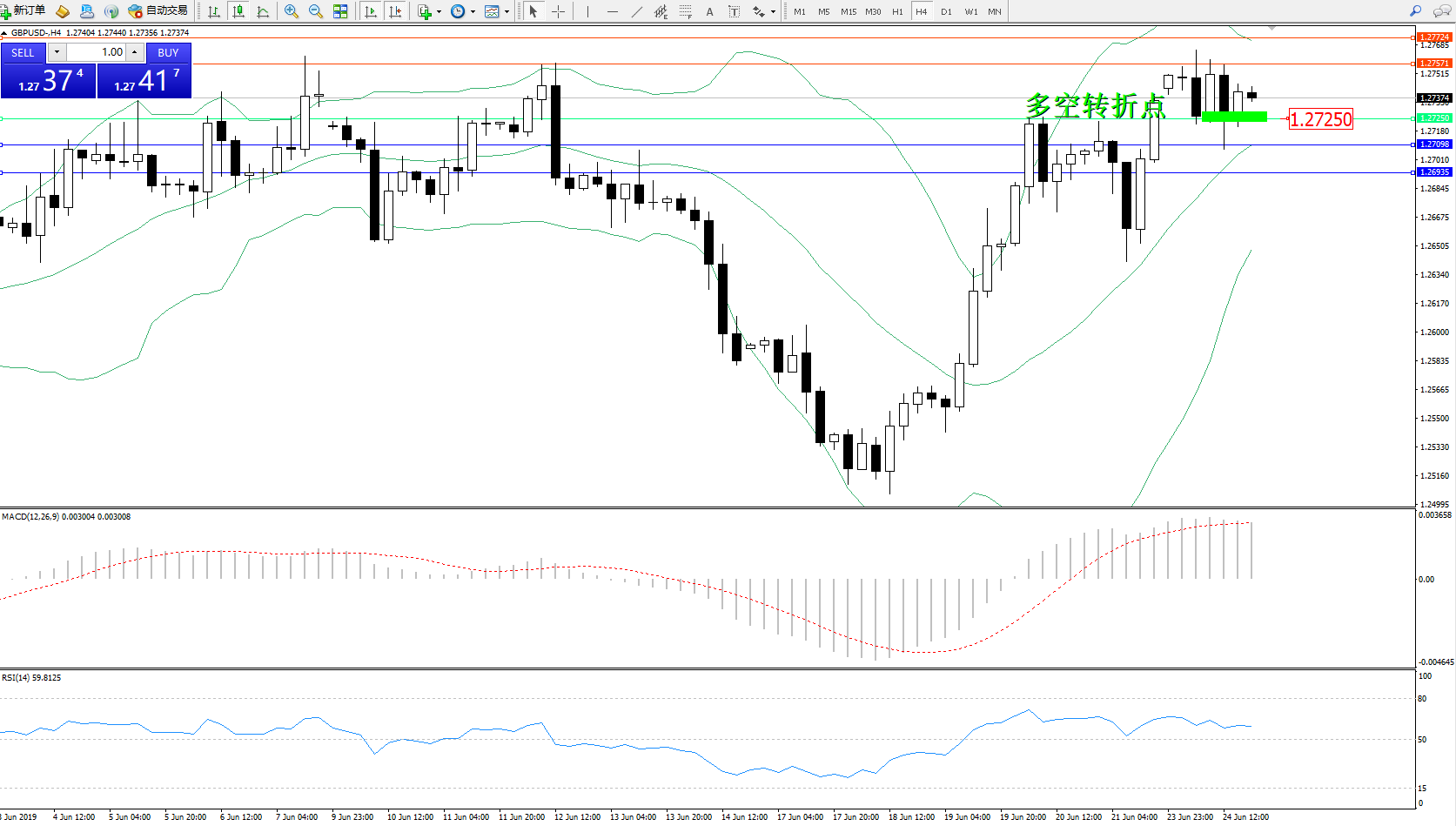 交易策略:1.27250上方看涨,目标1.27571、1.27724