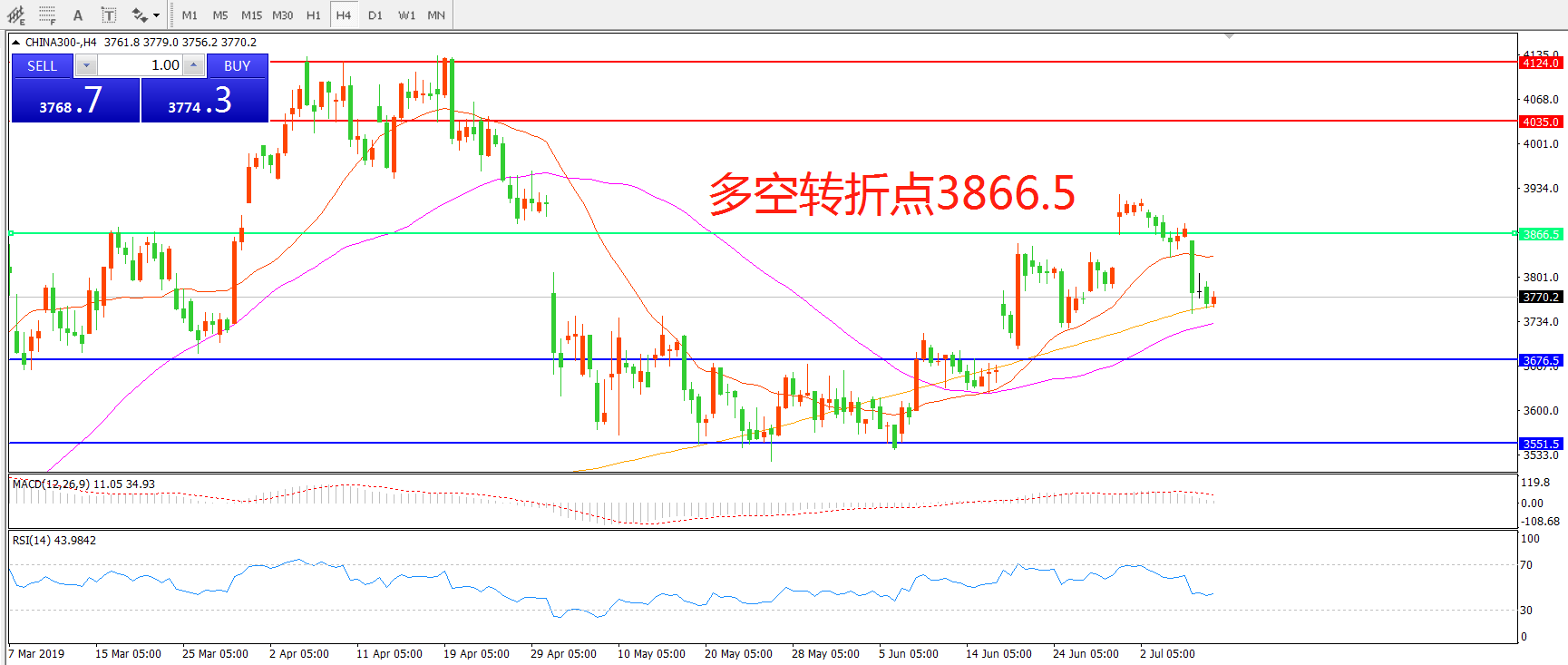 沪深300指数CHINA300 4小时图