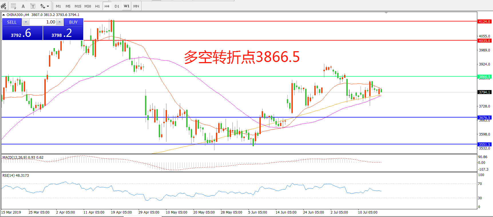 沪深300指数CHINA300 4小时图