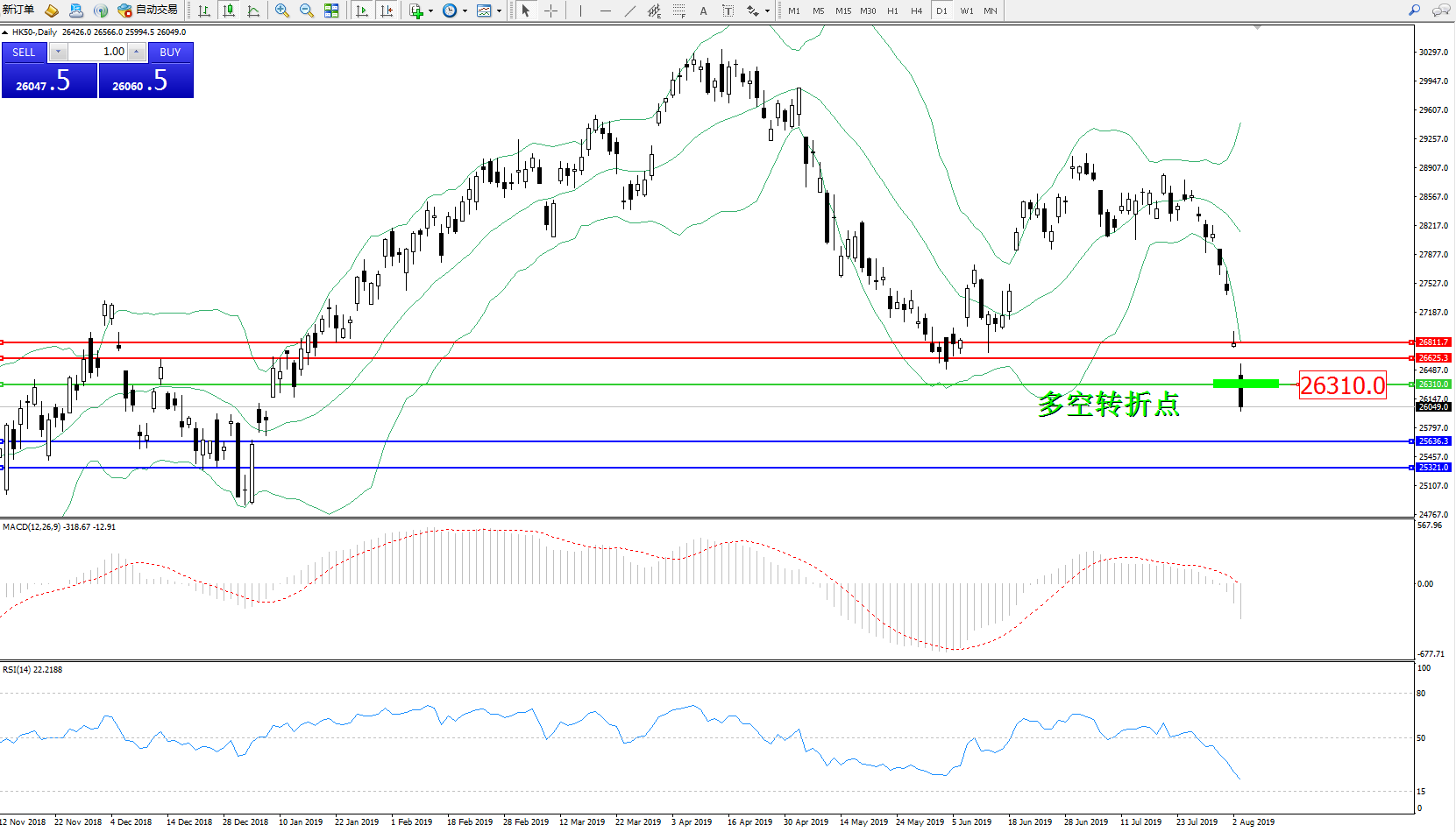 恒指HK50 ——日K线图显示: