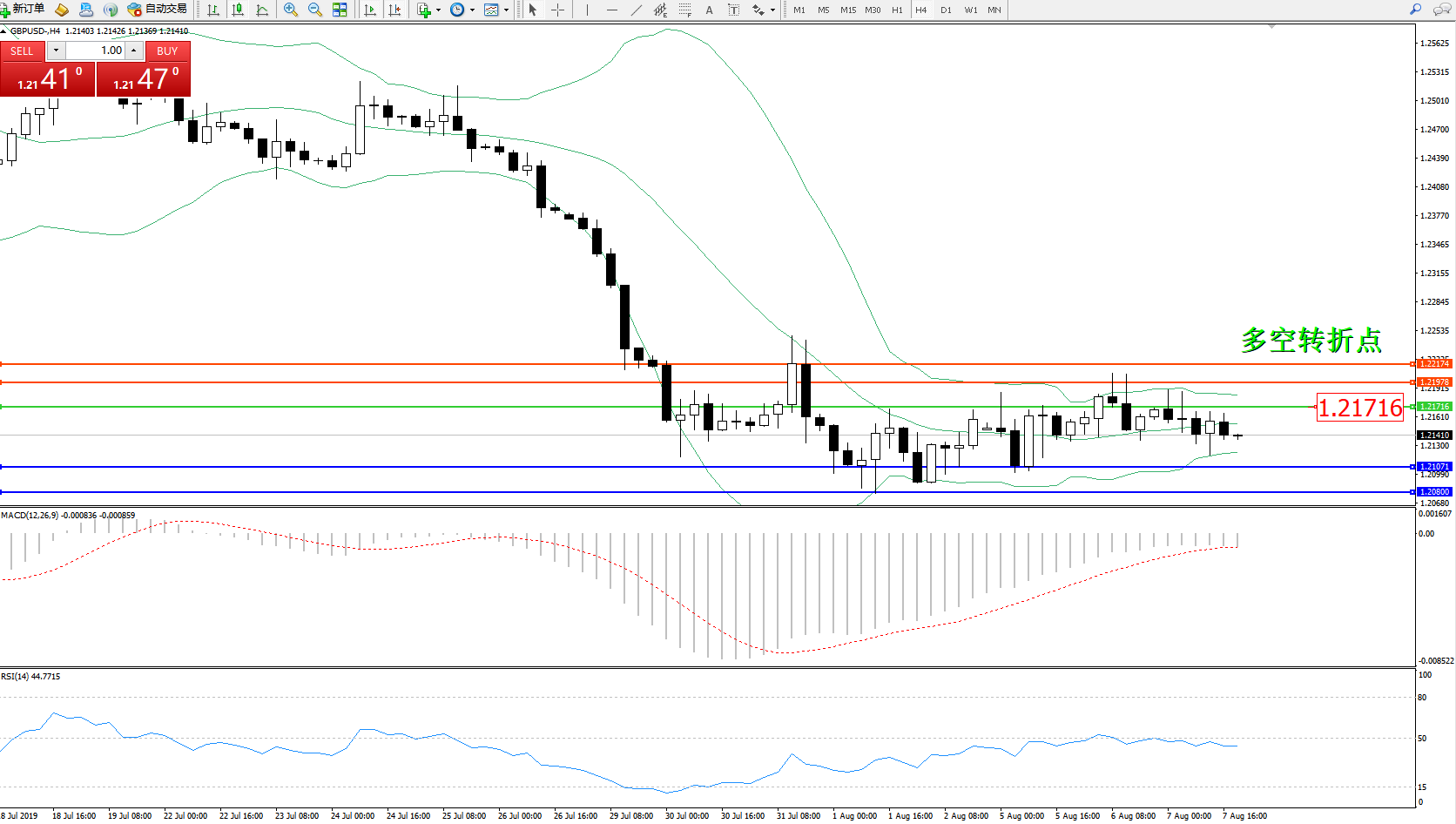 交易策略:1.21716下方看跌,目标1.21071、1.20800