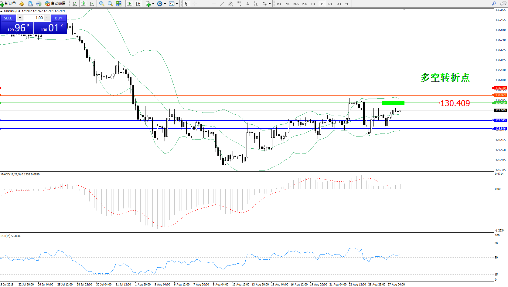 交易策略:130.409下方看跌,目标129.343128.846