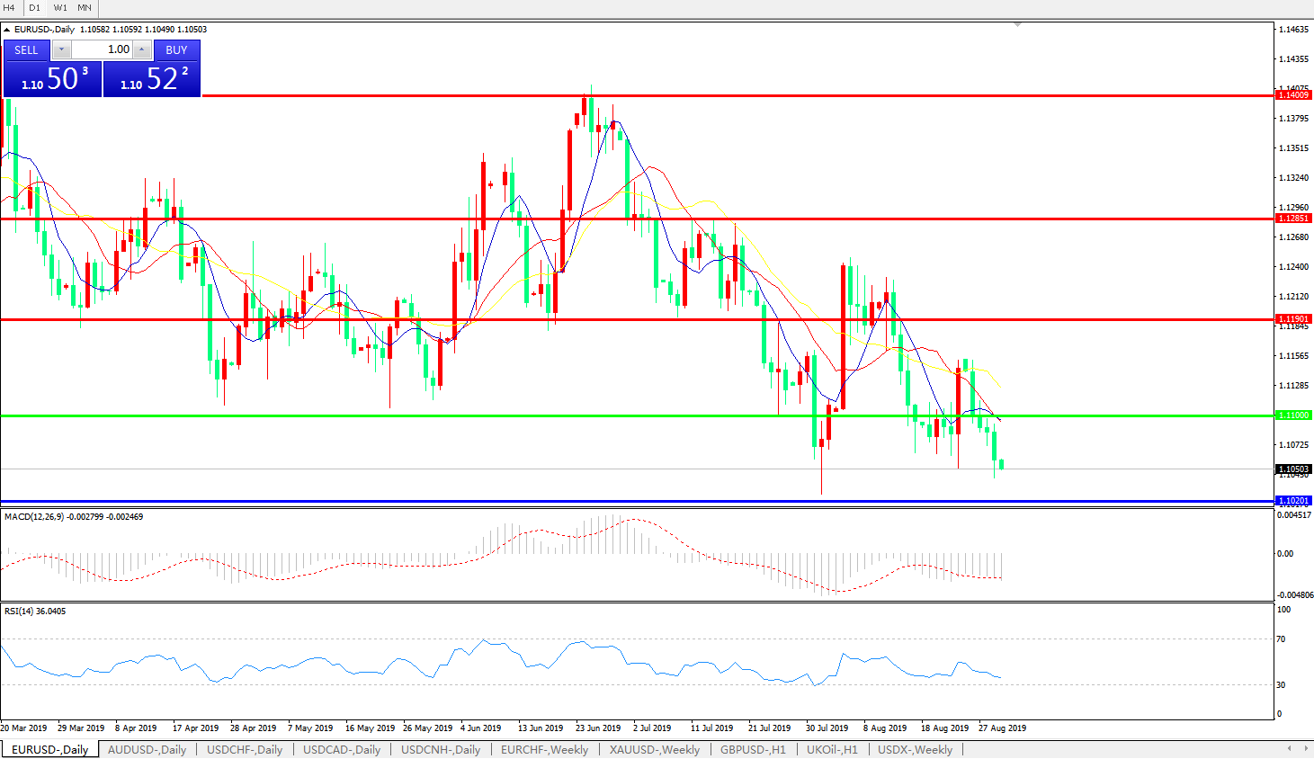 欧元兑美元EURUSD   日线: