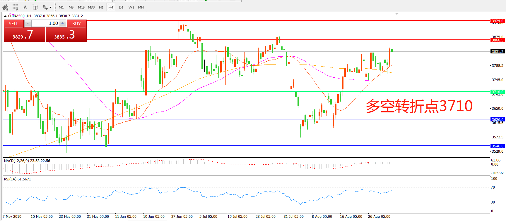 多空转折点:3710.00