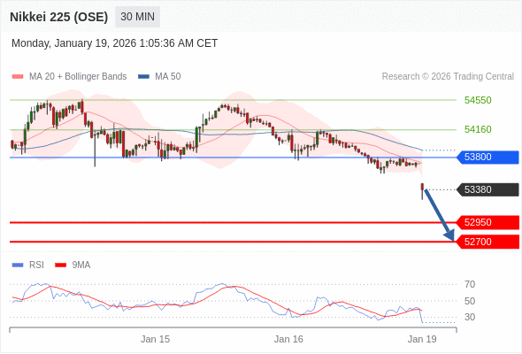 在 53800 之下,看跌,目标价位为 52950 ,然后为 52700 。