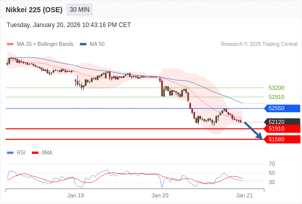 在 52550 之下,看跌,目标价位为 51910 ,然后为 51580 。