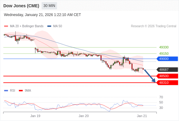 在 49000 之下,看跌,目标价位为 48500 ,然后为 48310 。