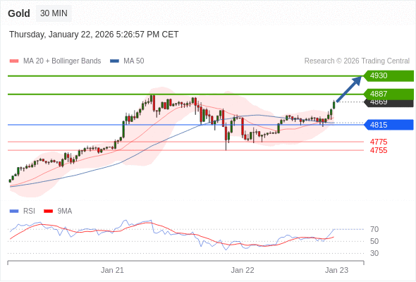 在 4815 之上,看涨,目标价位为 4887 ,然后为 4925 。