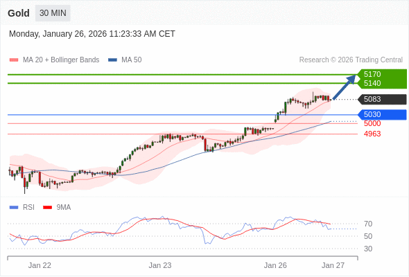 在 5030 之上,看涨,目标价位为 5140 ,然后为 5170 。