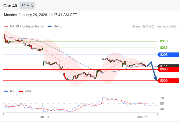 Cac 40 当日内: 存在压力。