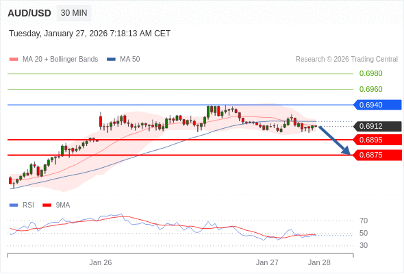 在 0.6940 之下,看跌,目标价位为 0.6895 ,然后为 0.6875 。