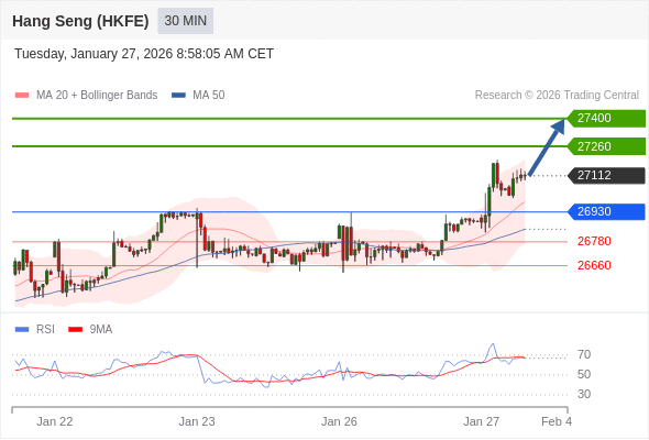 香港恒生指数期货 当日内: 期待27400。