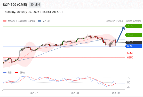 在 6995 之上,看涨,目标价位为 7040 ,然后为 7075 。