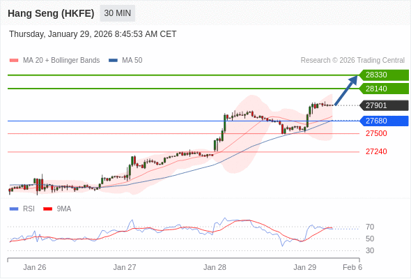 在 27680 之上,看涨,目标价位为 28140 ,然后为 28330 。