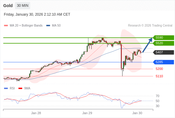 交易策略: 在 5285 之上,看涨,目标价位为 5520 ,然后为 5590 。