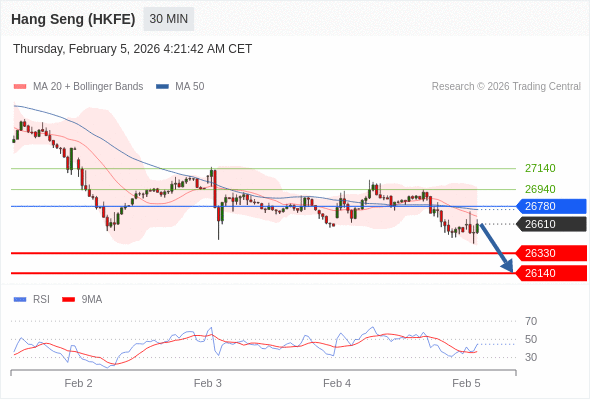 香港恒生指数期货 当日内: 短期关键阻力位在26780。