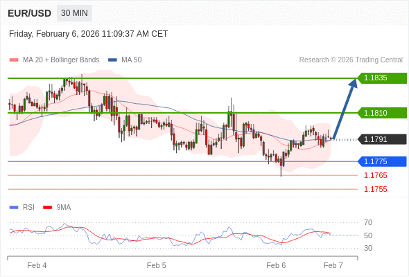 在 1.1775 之上,看涨,目标价位为 1.1810 ,然后为 1.1835 。