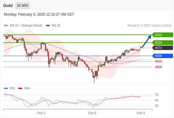 在 4900 之上,看涨,目标价位为 5020 ,然后为 5090 。