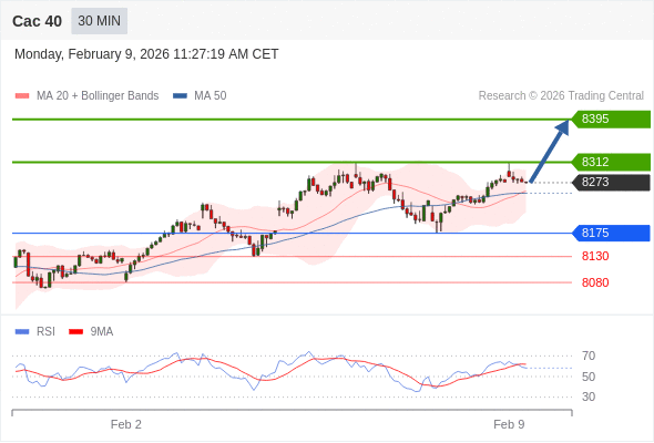 Cac 40 当日内: 在8175之上,看涨。