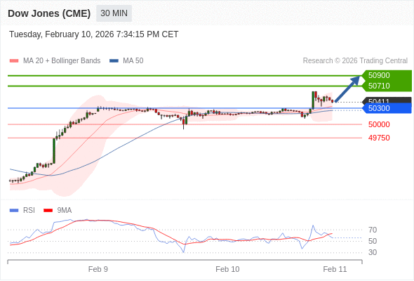 在 50300 之上,看涨,目标价位为 50710 ,然后为 50900 。