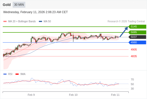 在 4980 之上,看涨,目标价位为 5085 ,然后为 5145 。