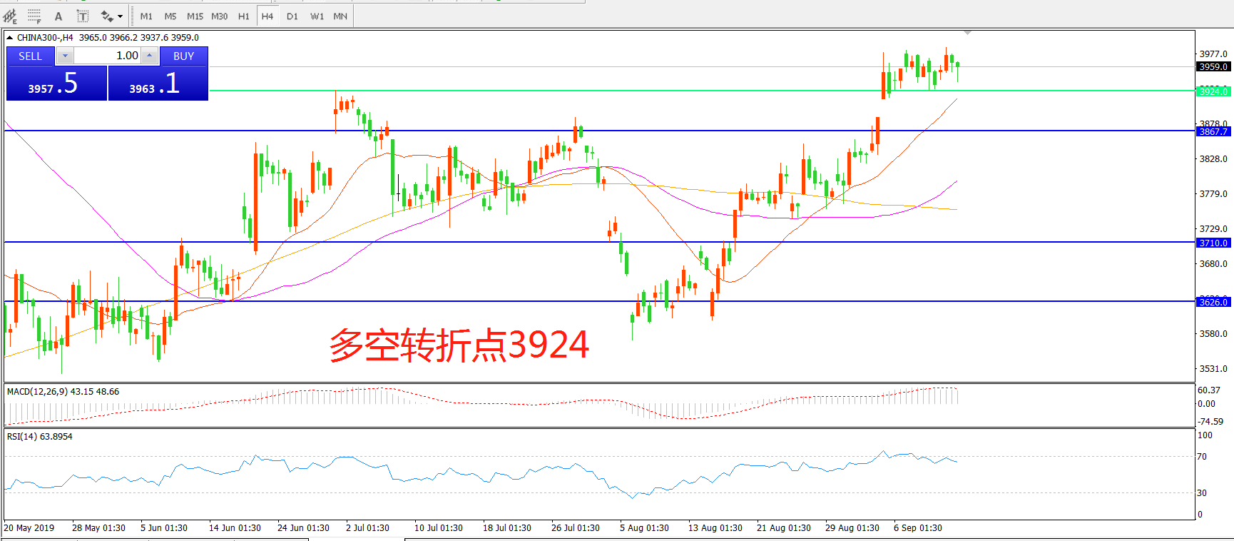 多空转折点:3924.00