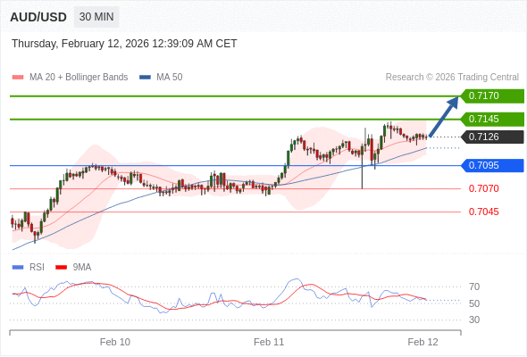 在 0.7095 之上,看涨,目标价位为 0.7145 ,然后为 0.7170 。