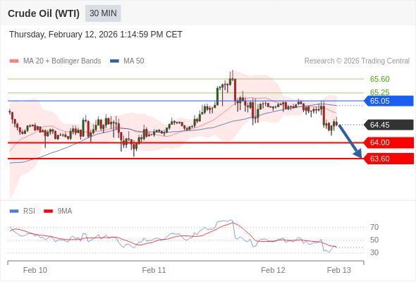 在 65.05 之下,看跌,目标价位为 64.00 ,然后为 63.60 。