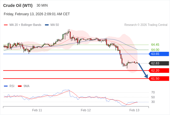 在 63.65 之下,看跌,目标价位为 62.20 ,然后为 61.50 。