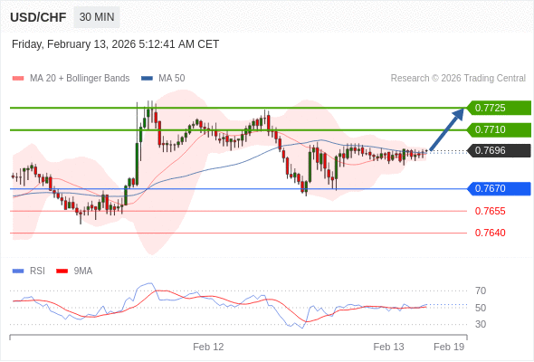 在 0.7670 之上,看涨,目标价位为 0.7710 ,然后为 0.7725 。
