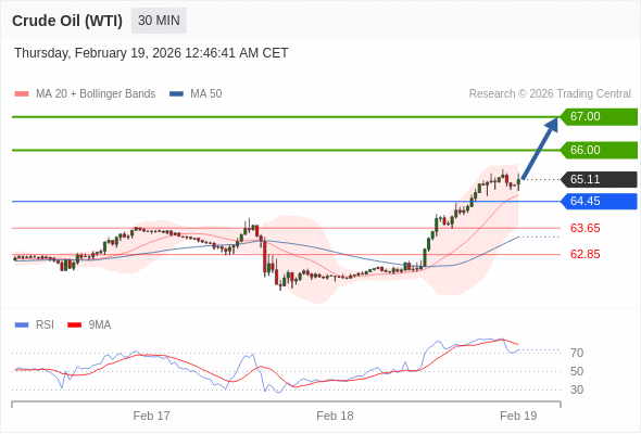 在 64.45 之上,看涨,目标价位为 66.00 ,然后为 67.00 。