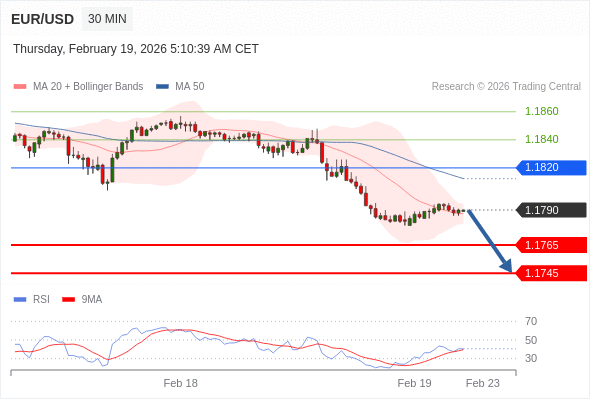 在 1.1820 之下,看跌,目标价位为 1.1765 ,然后为 1.1745 。