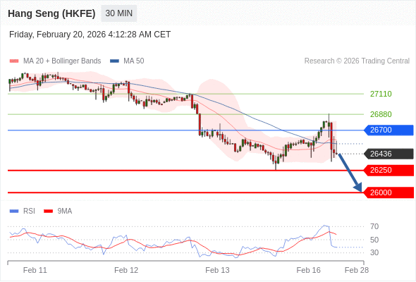 在 26700 之下,看跌,目标价位为 26250 ,然后为 26000 。