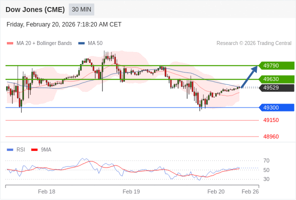 在 49300 之上,看涨,目标价位为 49630 ,然后为 49790 。