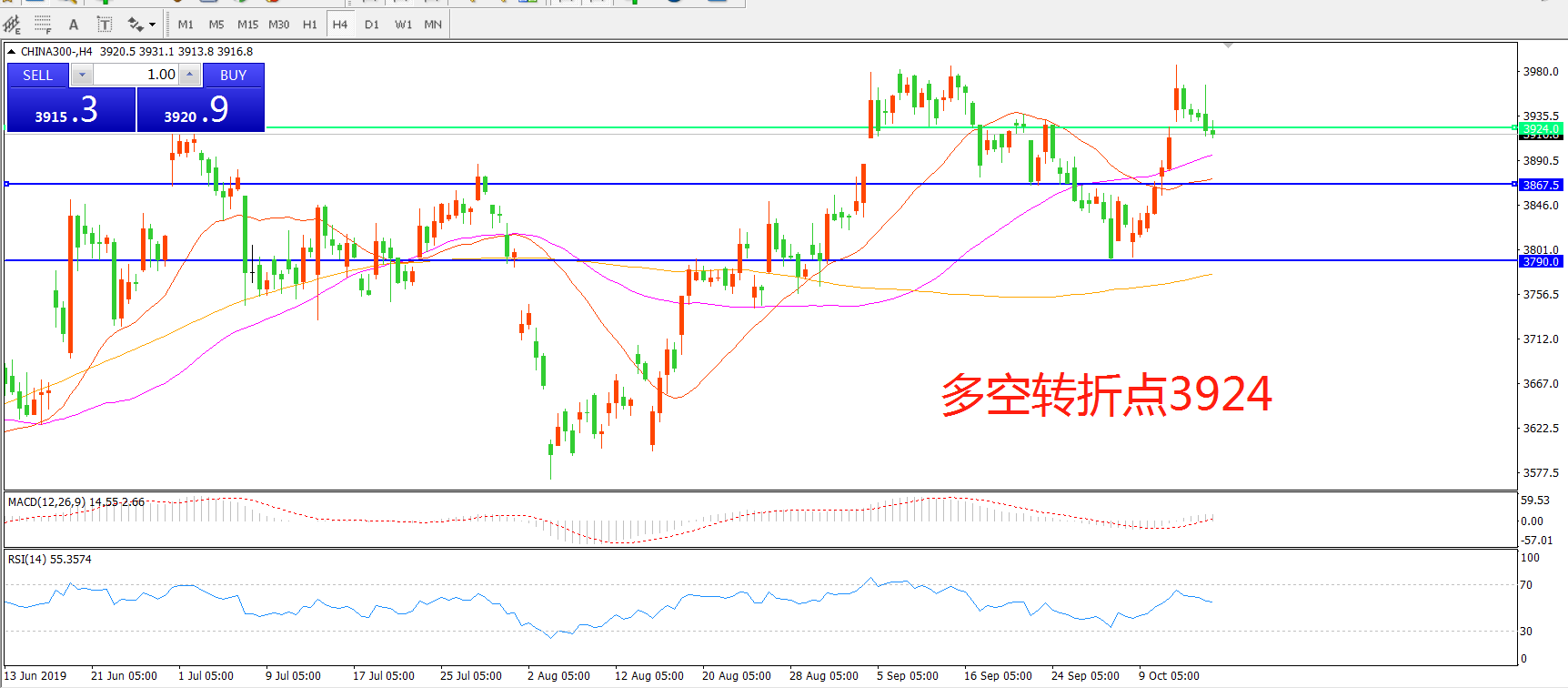 沪深300指数CHINA300 4小时图