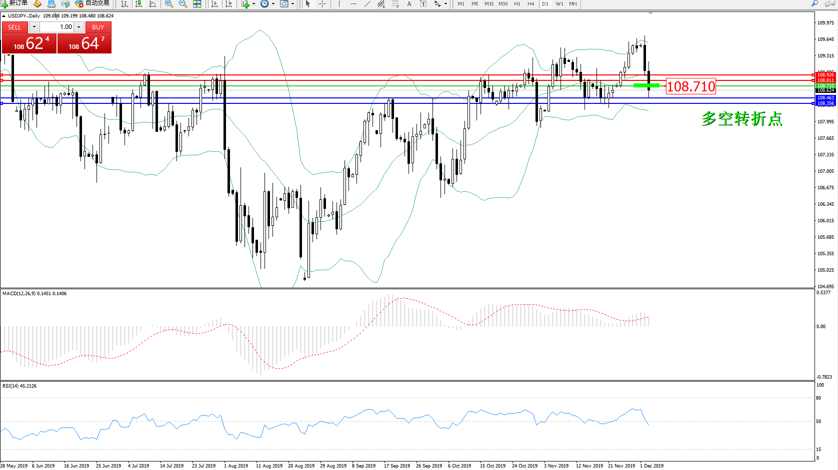 美元兑日元下跌0.32%至108.63,连续第四天走低,一度触及108.48的11月22日以来最低;因贸易紧张局势令市场不安。避险货币飙升,美日触及两周高位,美国总统特朗普的贸易言论令市场乐观情绪降温,欧美股市大跌,导致避险需求增加;此外美元疲软、美债收益率大幅下滑,也支撑了日圆。