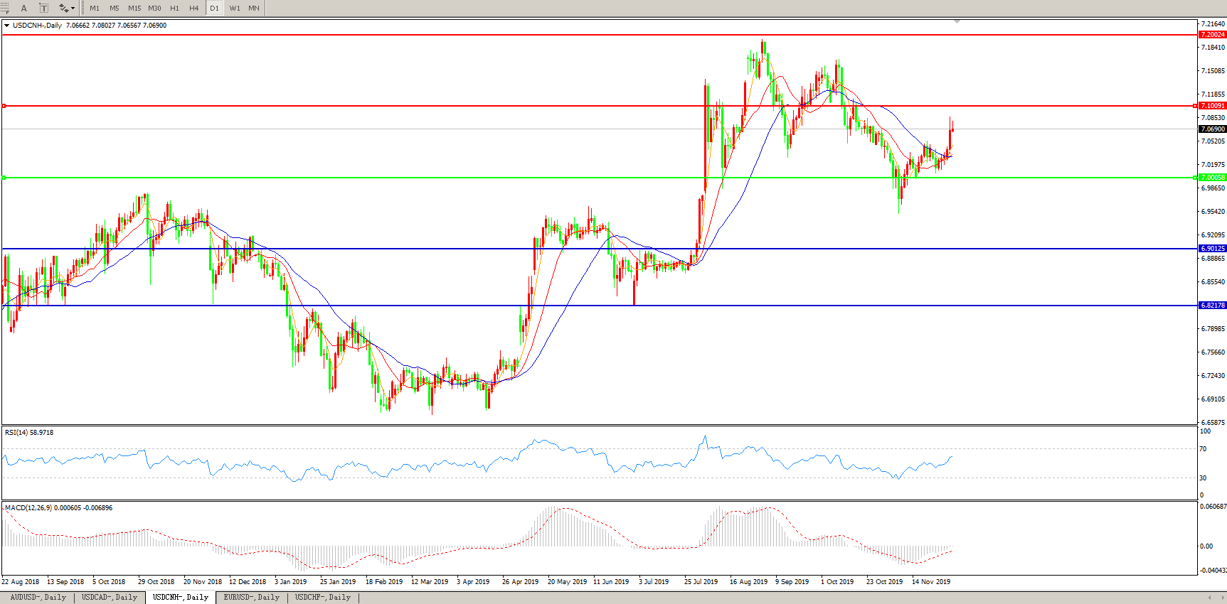 交易策略: 在7.0000之上,看涨,目标价位为7.1000,然后为7.2000。