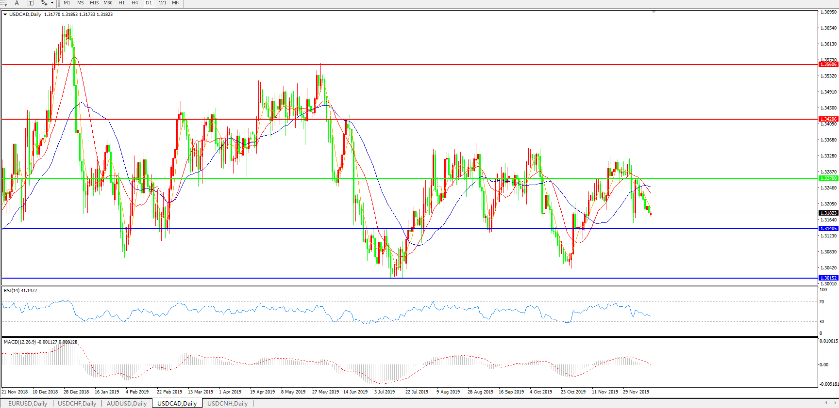 美元兑加元USDCAD    日线图: