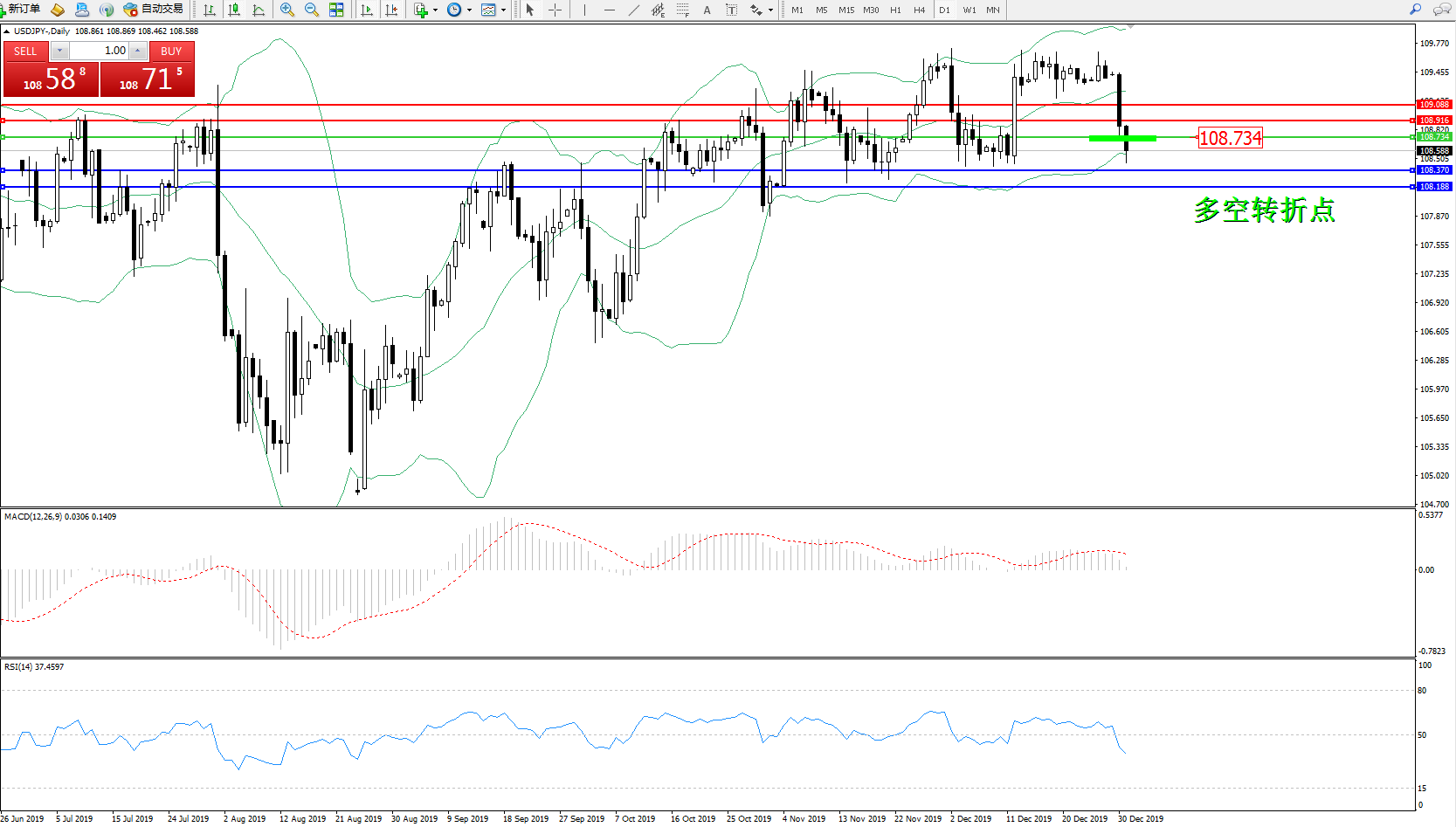 美元兑日元下跌0.25%至108.61,为连续第四年下挫;盘中一度下跌0.4%,至两周低位。在美东时间上午11点定盘价确定后,日元遭遇大量抛盘,日元兑美元回吐涨幅。日内全球股市有所承压,避险需求有所回升,而中东局势的混乱也带给日元一定支撑,但更重要的是投资者对美元看涨的情绪有所减弱,因此前强势的美元扮演了重要的避险角色,但随着近期全球经济企稳,对冲基金在截至1224日的期间内自20186月以来首次成为美元净空头,而对日元的空头仓位减少了8520张合约,对日元的看跌程度达到11月以来最低。
