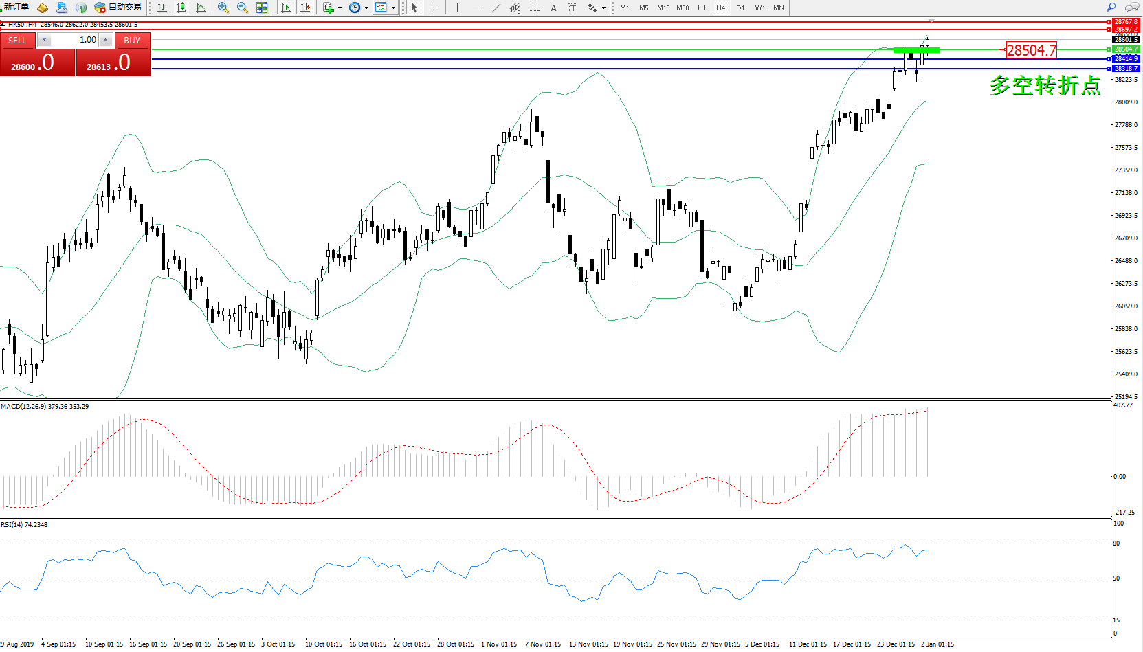 香港恒生指数1月2日(周四)收盘上涨353.77点,涨幅1.25%,报28543.52点;A股喜迎开门红,沪指涨超1%深成指涨近2%,受惠于内地人民银行降准及中美双方订出签署协议日期,港股在踏入2020年首日,实时高开59点,随即再扩大升幅见28538。短期内港股上行的依然意愿较强。市场继续憧憬国际贸易关系的进一步改善,同时,此前市场担忧的几个事件也未出现“恶化”,因此可能将继续推动股市上行。