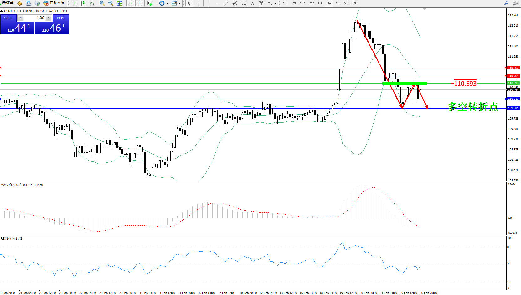 交易策略:110.593下方看跌,目标110.211、109.981