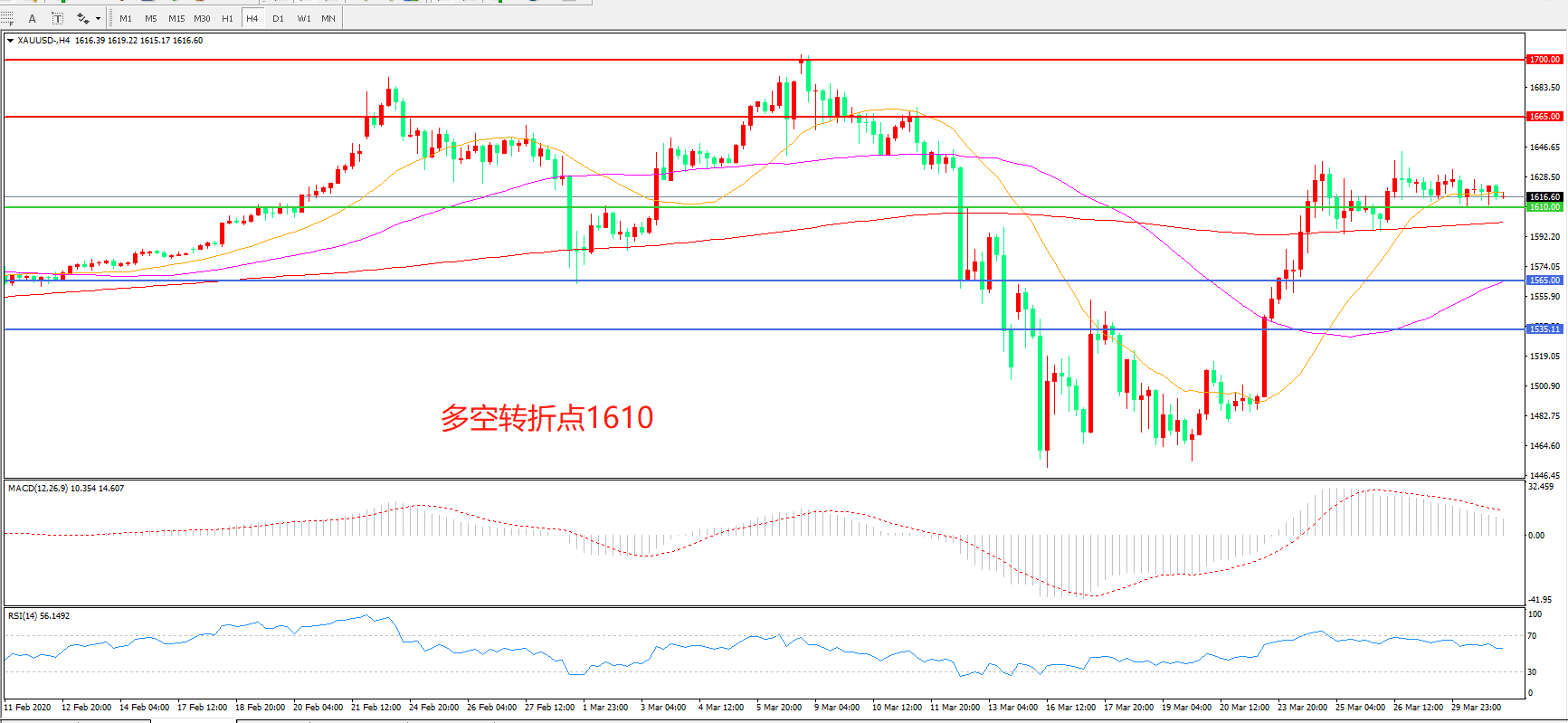 多空转折点:1610.00