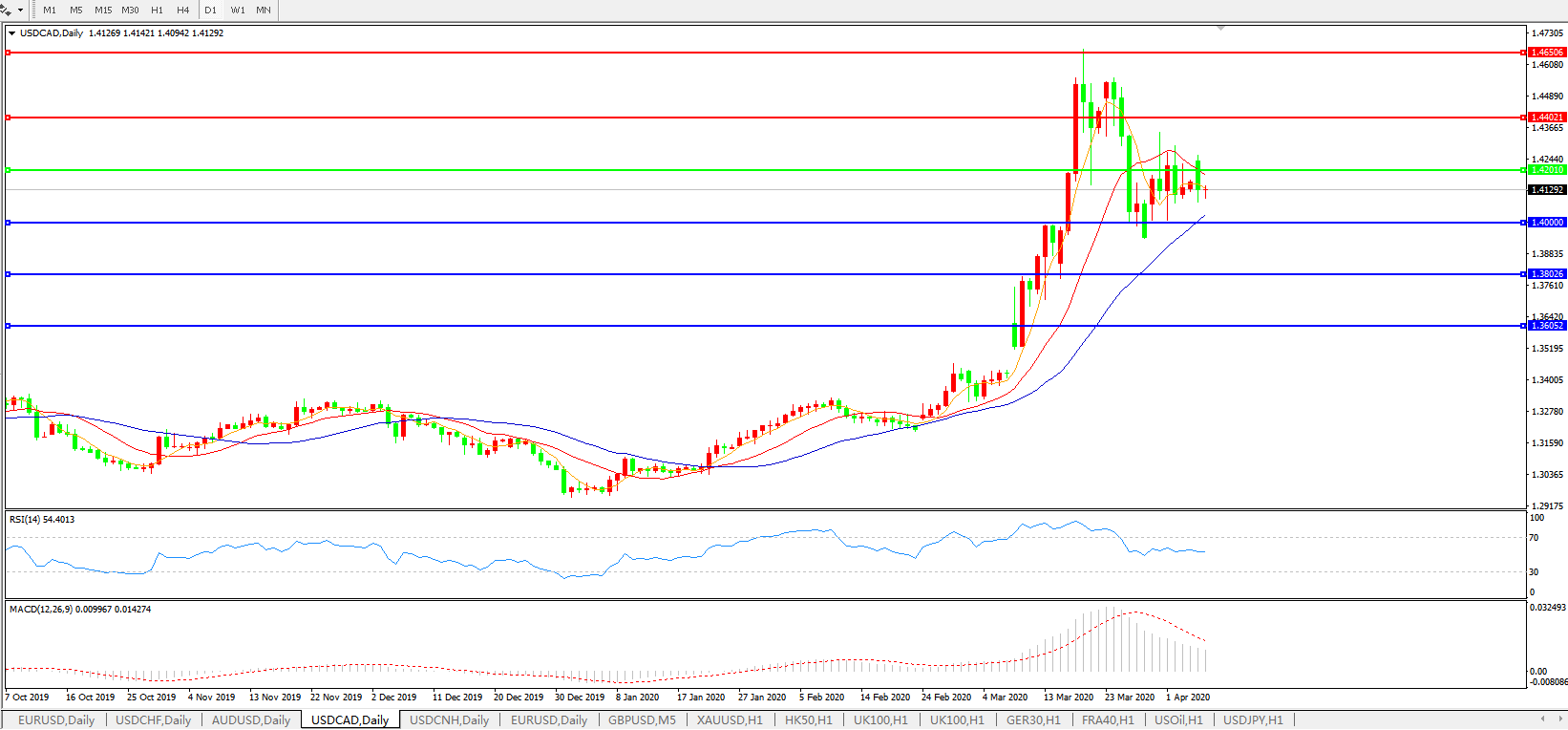 美元兑加元USDCAD    日线图: