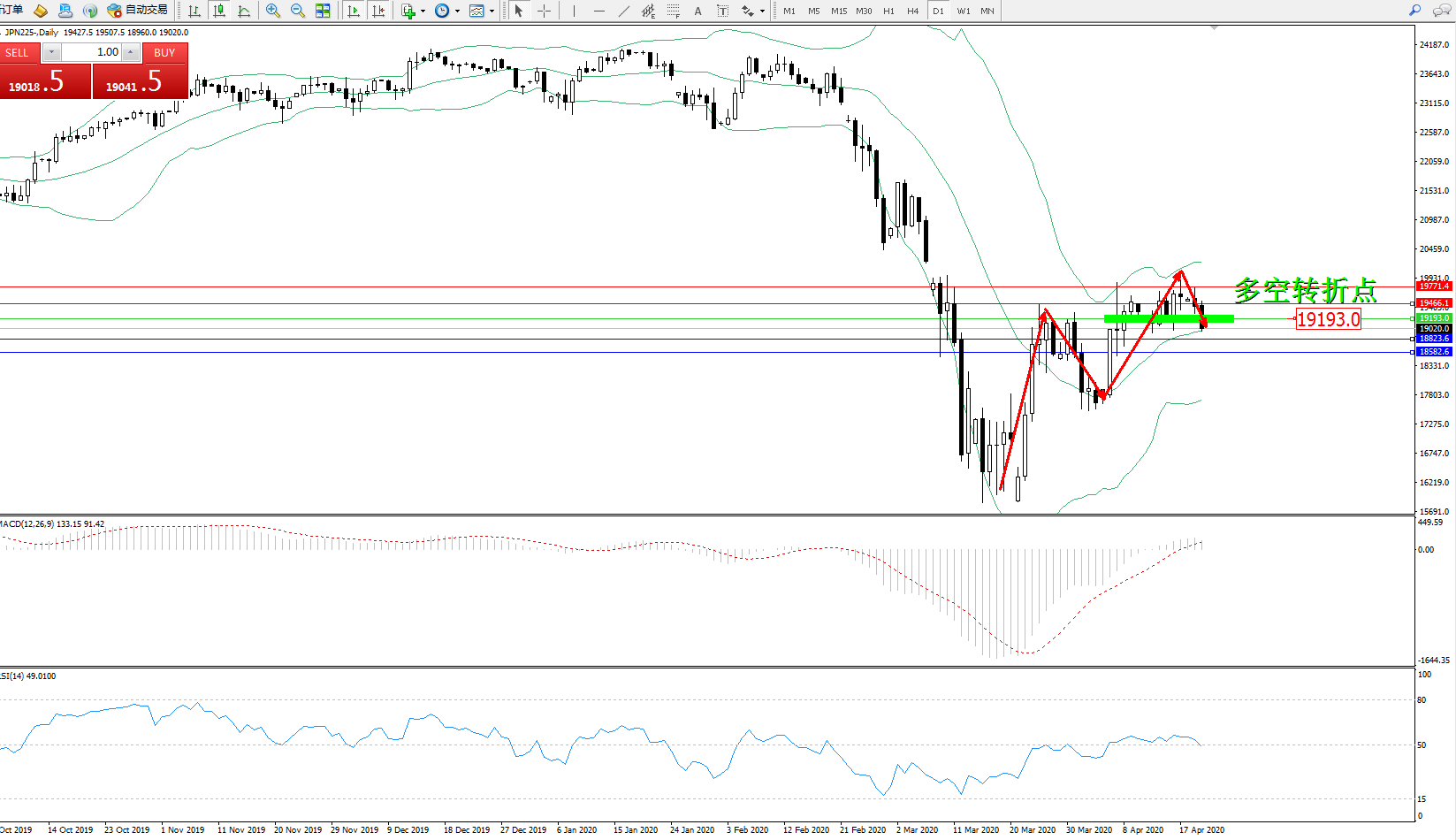 日经225指数421日(周二)收盘下跌385.62点,跌幅1.96%,报19283.50点。市场风险偏好情绪回落,同时叠加地缘风险的相关消息,亚洲股市纷纷大跌,目前解除经济封锁还需要一定时间,全球经济已经遭遇重创,且可能不完全可恢复的,日本作为全产业链经济体的代表,抵抗风险的能力更强。日本央行:日本金融体系整体保持稳定。日本企业维持稳健的营收及现金流。需要关注信贷成本上升的风险。日本政府和日本央行已经实施有力的政策措施。信贷担保和利息补贴至关重要。银行的证券投资组合可能恶化。资金紧张的状况可能会蔓延。可能出现外汇资金不稳定的风险。发行企业债和商业票据的情况仍然有利。自3月以来,部分银行对投资更加谨慎。