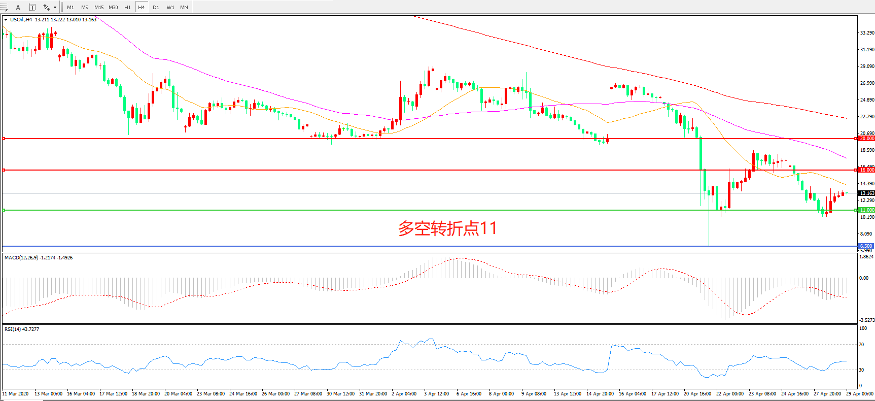 周三(4月29日)凌晨,美国石油协会公布数据显示,美国API原油库存增加998万桶,好于预期,汽油库存意外减少,利好原油。数据公布后,美油短线快速走高,截止发稿前,收报13.26美元/桶。