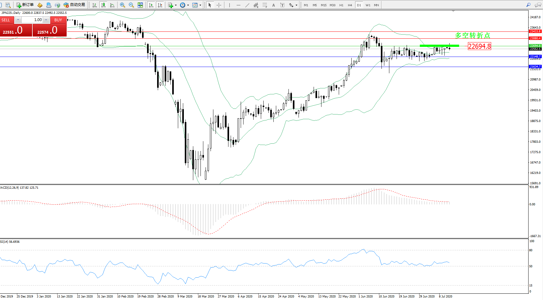 日经225指数713日(周一)收盘上涨468.69点,涨幅2.10%,报22759.50点。中国股市表现强劲,令市场风险偏好情绪不断回暖。亚洲股市表现强劲,本周市场主要焦点将是日本央行行长黑田东彦召开的新闻发布会,616日日本央行会议上,黑田东彦表示超长期日本国债收益率与其他国家相比并不高,被视为暗示日本央行认为长期债券收益率有上升空间,30年期日本国债收益率从7月初的0.53%升至0.65%,然后出现整理,但仍高于这次会议之前的水平;日本债券收益率曲线已经更为陡峭,但如果黑田东彦淡化相关评论,日本债券收益率曲线已可能进一步趋于平坦.