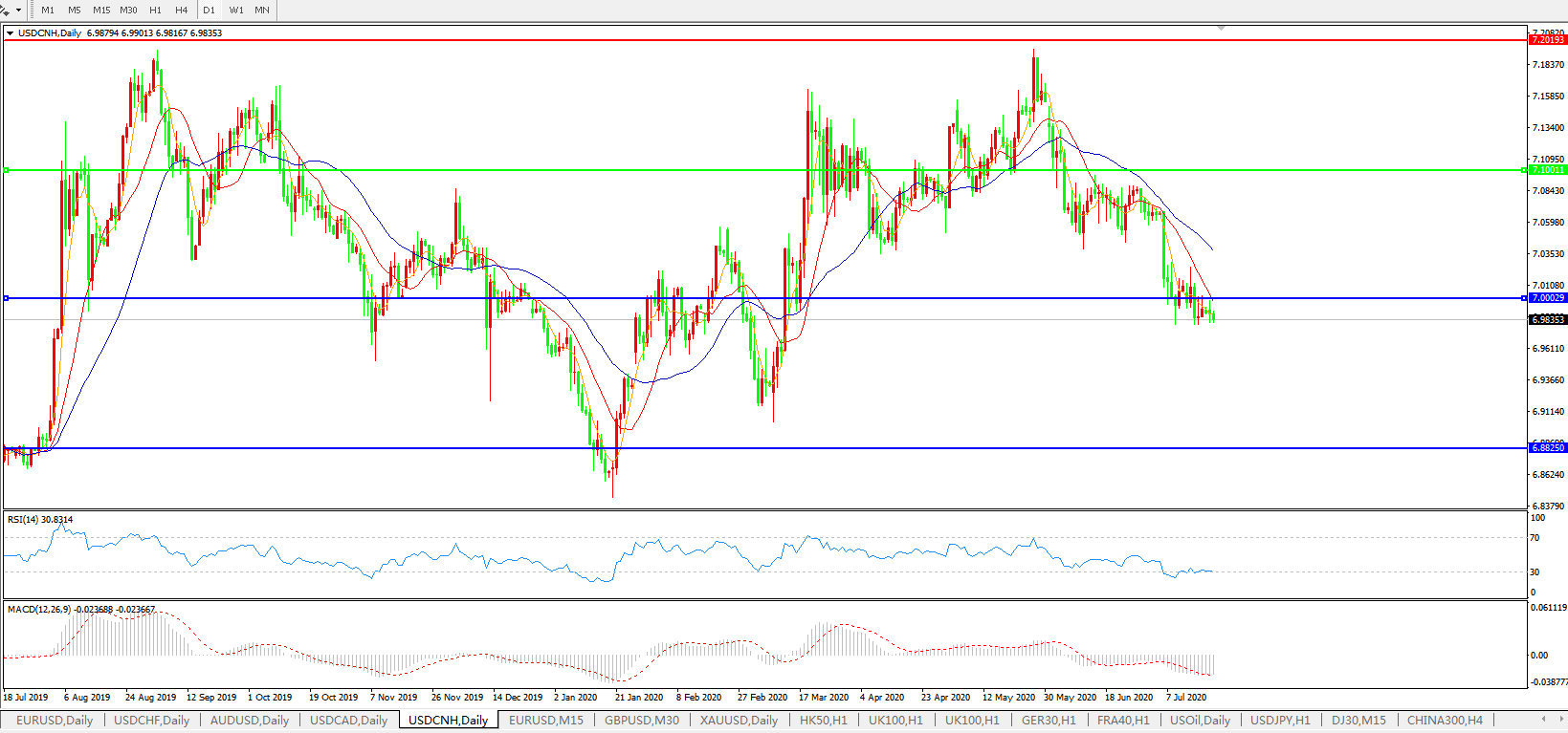 备选策略: 在7.1000之上,看涨,目标价位为7.2000,然后为7.3000。